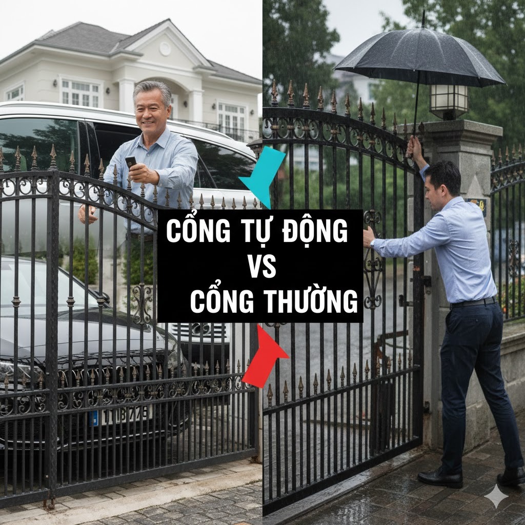 | Tiêu chí | Cổng Tự Động (Lắp motor) | Cổng Thường (Thủ công) |